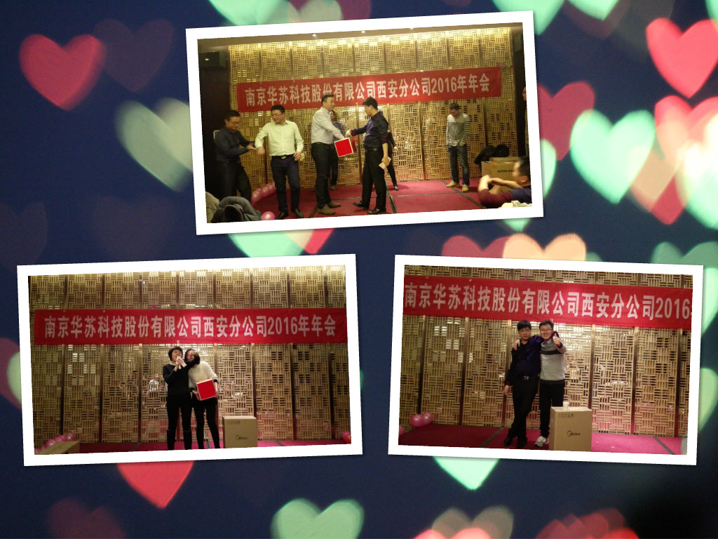 繼華蘇福建分公司年會之后,近日,華蘇西安分公司2016年年會也風風火火地拉開了帷幕。伙伴們滿載著期盼相聚,舉杯相祝、豪情滿懷?;厥走^去,有太多的難忘和不舍,面對未來,他們也將用自己的行動收獲更多的喜悅。