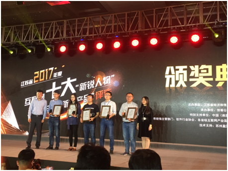 2018年4月3日下午,江蘇省2017年度互聯(lián)網(wǎng)十大新銳人物與創(chuàng)新力產(chǎn)品評(píng)選頒獎(jiǎng)典禮在南京軟件谷楚翹城會(huì)議中心落下帷幕。