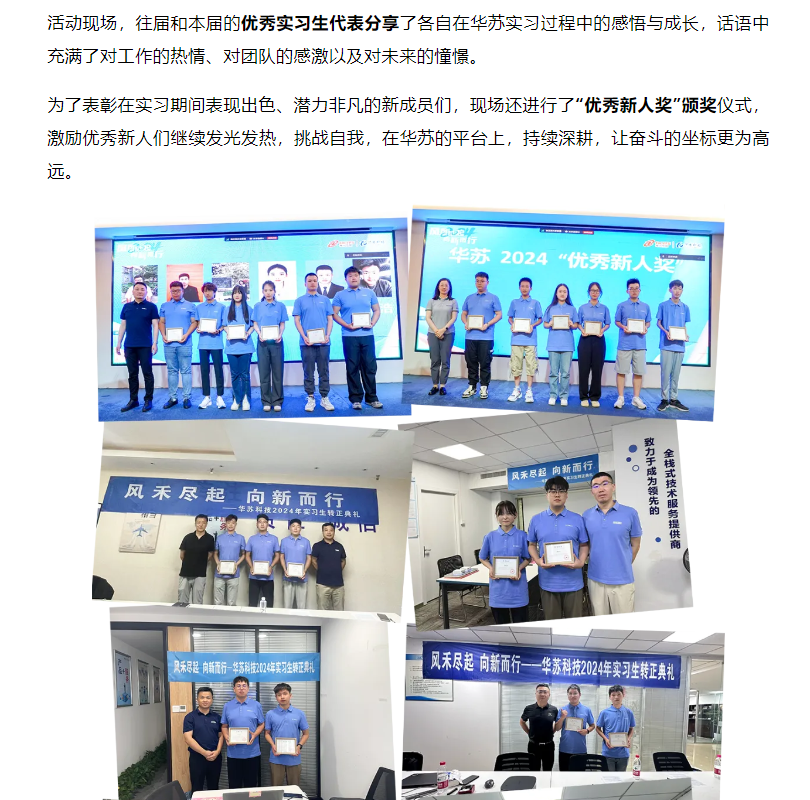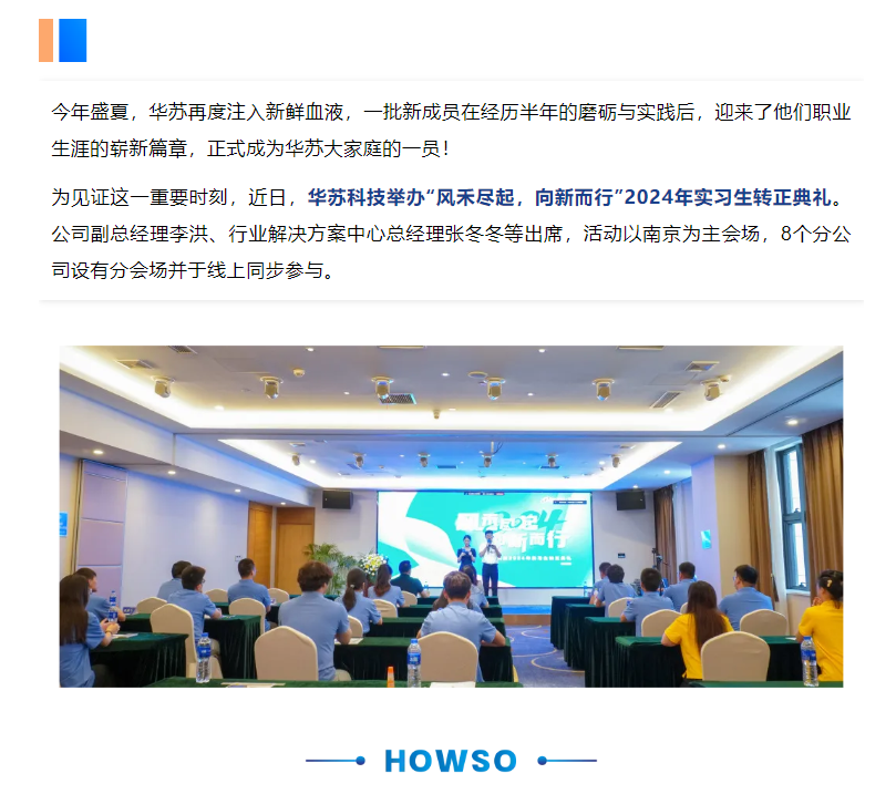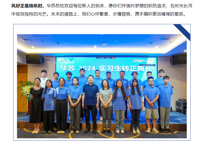 近日,華蘇科技 舉辦“風禾盡起,向新而行”2024年實習生轉正典禮。