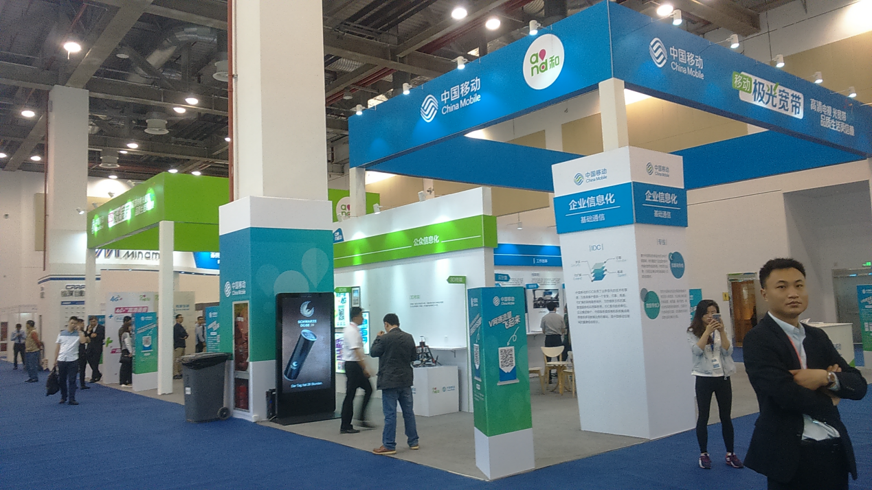 本屆展會(huì)共計(jì)500家企業(yè)參展、展位數(shù)超1500個(gè),使用面積達(dá)40000平方米。中國移動(dòng)作為三大運(yùn)營商之一,在眾多展位中毋庸置疑地占據(jù)著重要位置。