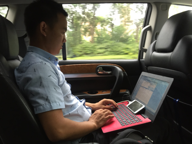 兩位外場測試工程師負責東南大學九龍湖校區(qū)的現(xiàn)場保障工作。出發(fā)前,其仔細檢查了所需設備,包括一臺電腦、一個充電寶、一個GPS、三部測試手機、三根數(shù)據(jù)線。在確認設備齊全后,他們便立刻打開測試軟件連接手機,從南京聯(lián)通新時空大廈一路測至東南大學,一旦發(fā)現(xiàn)有掉話或者上網(wǎng)速率慢的地方,當即分析原因,并在到達東南大學的時候,將這一路的測試LOG保存發(fā)送給后臺分析組進行分析。